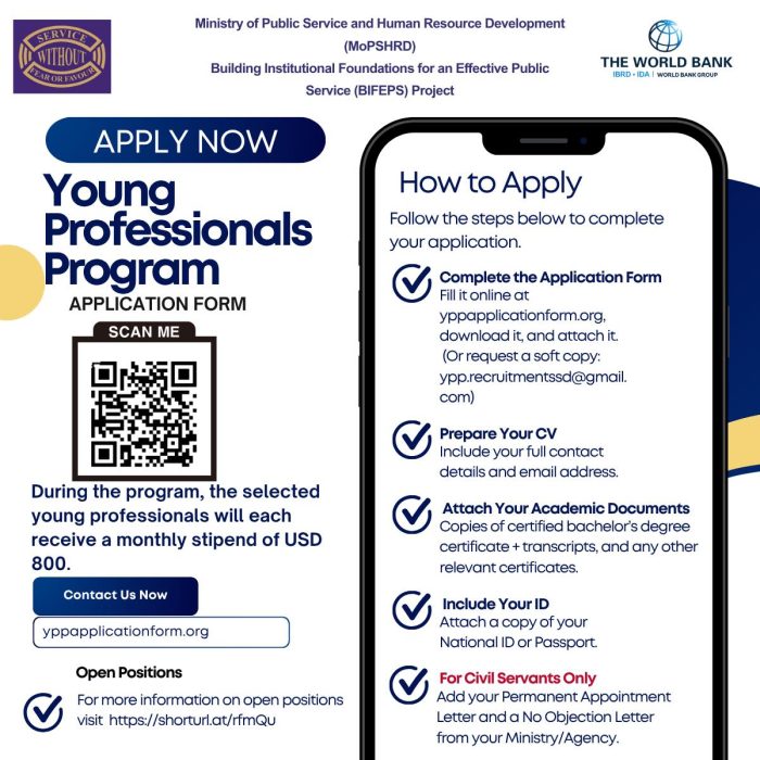 The Young Professionals Program (YPP), a flagship initiative of the BIFEPs Project, is officially OPEN for applications! This program is Funded by the World Bank and supported by the Ministry of Public Service and Human Resource Development.